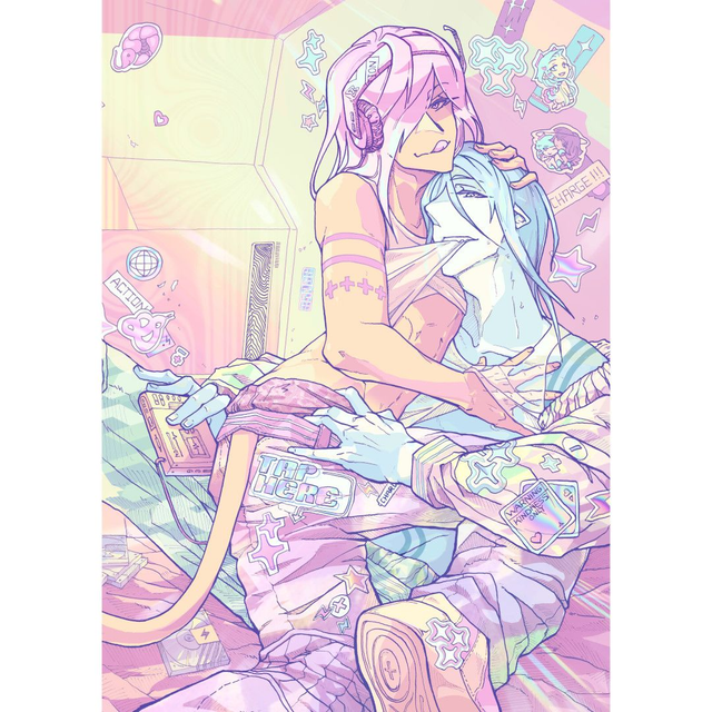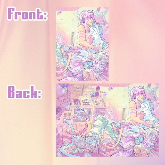 Double sided artprint depicting my OCs Copper and Zinc.
