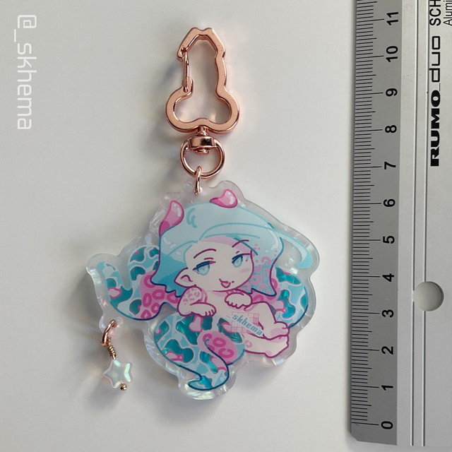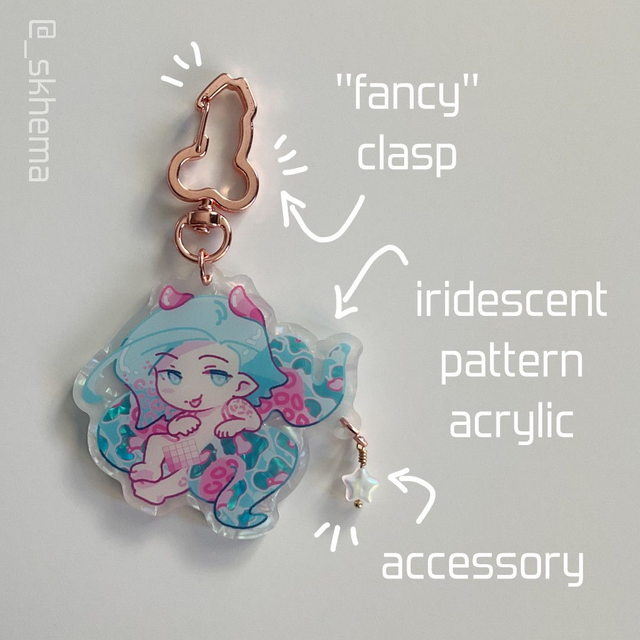 Holographic shell pattern acrylic depicting my OC Hydrargyrum. Includes a "fancy" clasp and an additional star shaped bead.