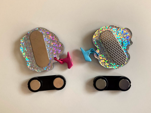 - two acrylic magnet pins