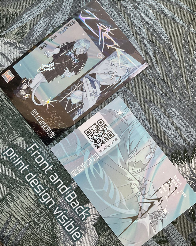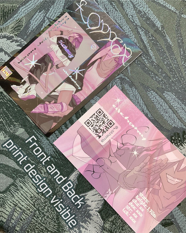 A set of two artprints depicting my OC Copper and Zinc in their alternative black/silver clothes.
