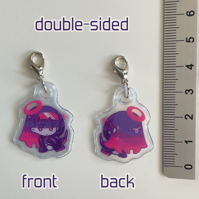 A phone charm depicting my OC Lead. The charm is made of elastic material, so it is lighter and thinner than acrylic and will not scratch your phone. Please allow minimal misalignment of front and back print.