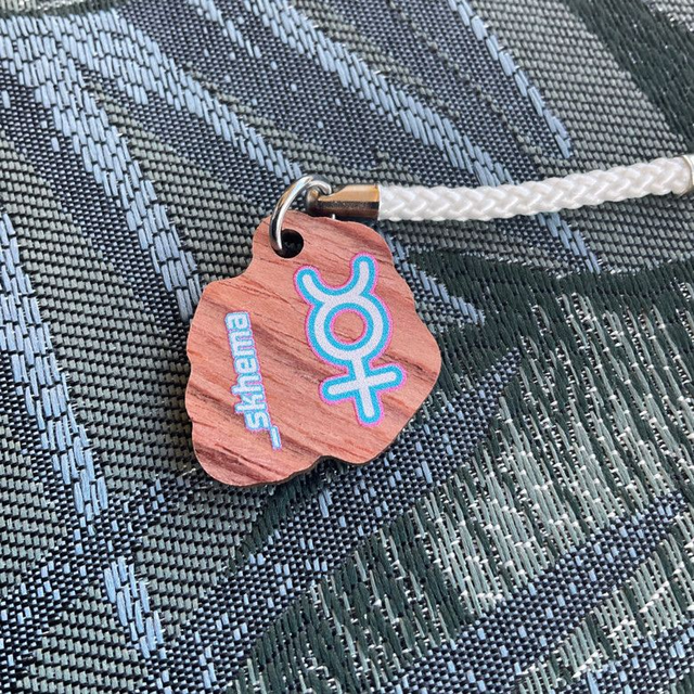Synthetic wooden phone charm depicting my OC Hydrargyrum. The charm is made of synthetic wood, so it is lighter than acrylic and each has an unique wooden texture.